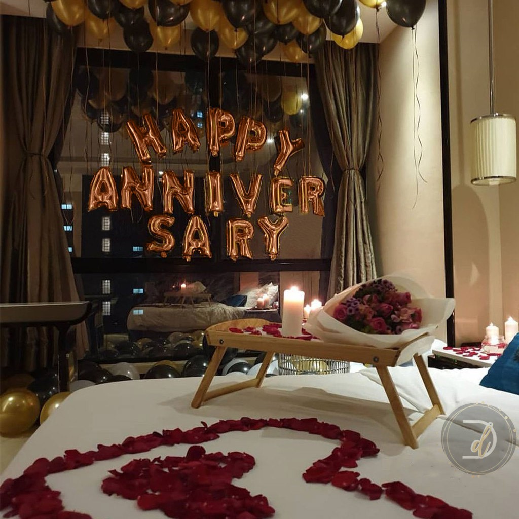 Jual Ddballoons Paket Happy Anniversary Rose Gold Romantis Gold Hitam Rose Petal Merah Indonesia Shopee Indonesia